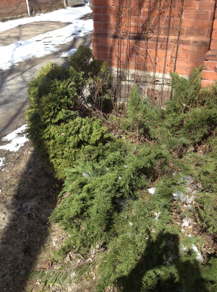 Poor squashed bushes Published April 17, 2014 at 1216 × 1632 in Black thumb These bushes are splayed from the weight of the snow. How do I fix them? They’re also too big. When do I trim them?