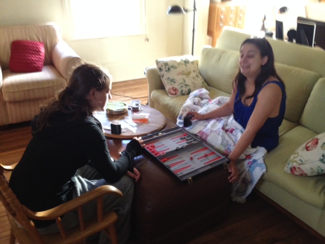Backgammon on mom’s couch