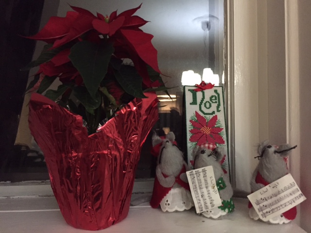 IMG_7349 Published December 15, 2015 at 640 × 480 in A merry little Christmas Poinsettia with some of the mice made by my mémère
